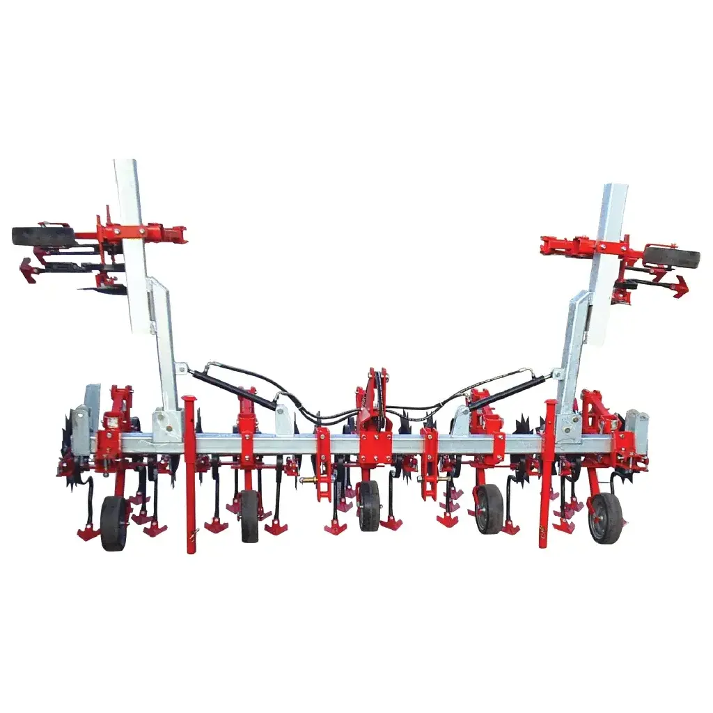 The inter-row cultivator is designed for hoeing between rows of crops like corn, sunflower, and vegetables, providing weed control and moisture retention.